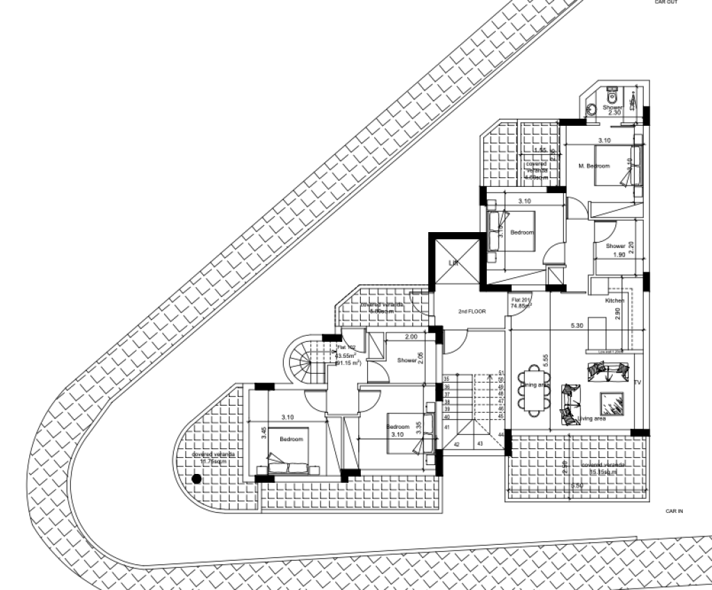 It measures of 95sqm total area, 75sqm internal space with a 20sqm balcony.