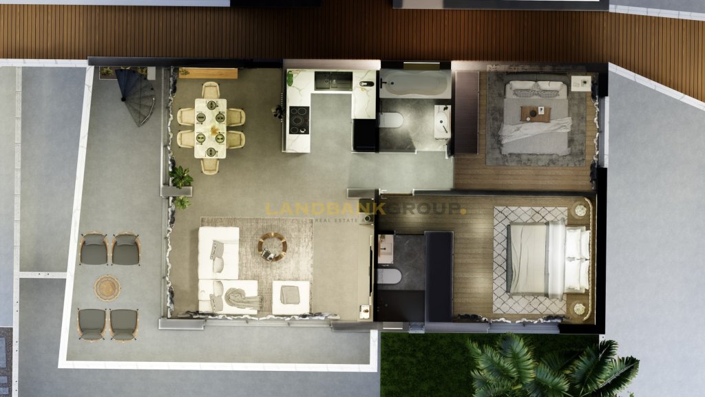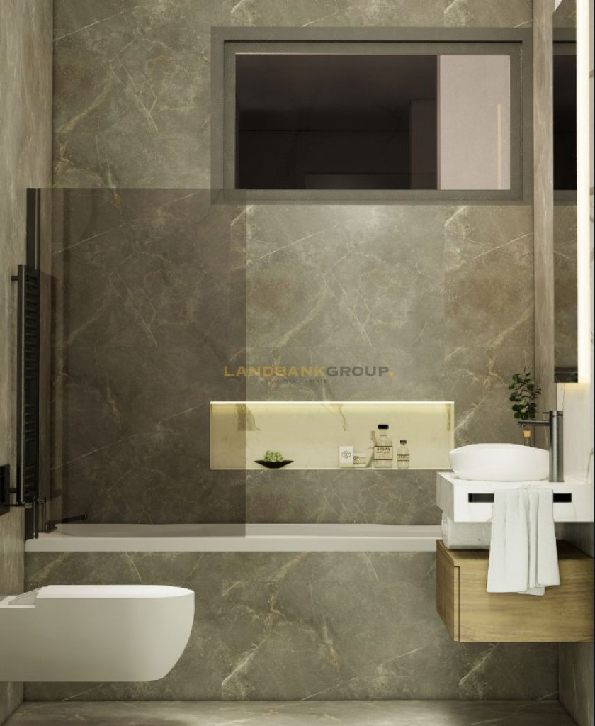It measures of 100sqm total area, 77sqm of internal space, 23sqm covered veranda and a spacious of 73sqm roof garden.