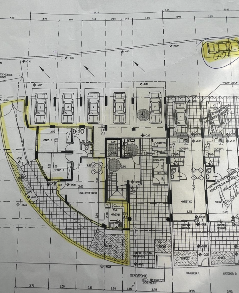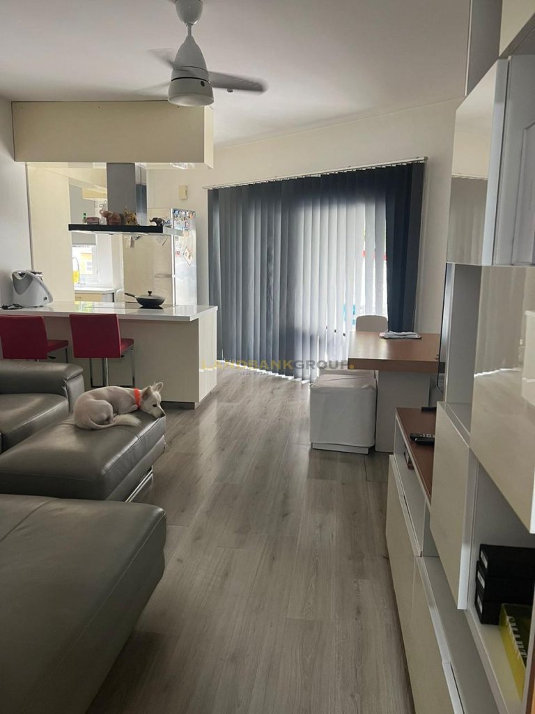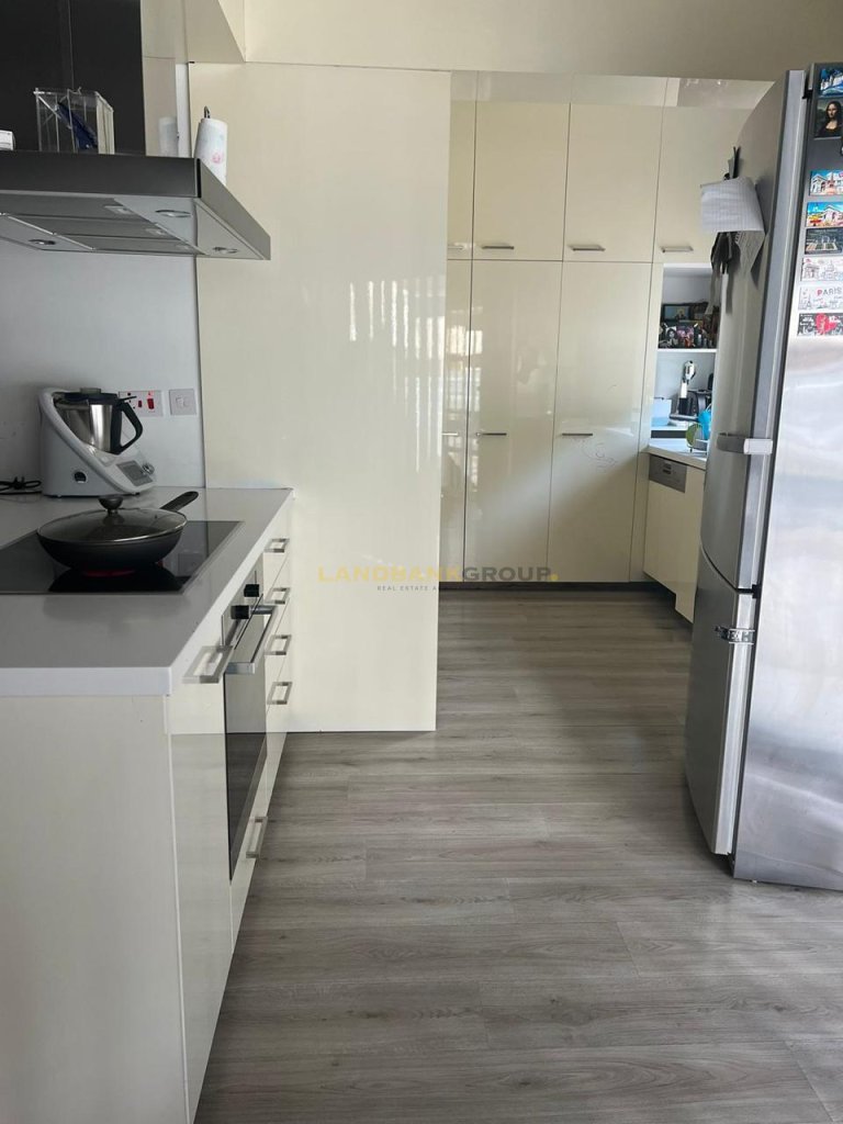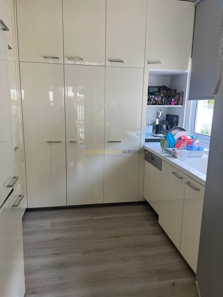 A corner ground floor apartment with 80 sqm of internal areas and 80 sqm of verandas, featuring one private parking. The layout includes a spacious open-plan kitchen and living area, two bedrooms, a bathroom, and a guest toilet.The kitchen is fully renovated with high-end fittings and technical granite by HAHMAX, and comes equipped with top-quality Miele appliances, including dishwasher, washing machine, dryer, fridge, oven, hob, and extractor. The apartment is also offered with furniture such as sofa, living room unit, dining table with chairs, and kitchen stools.