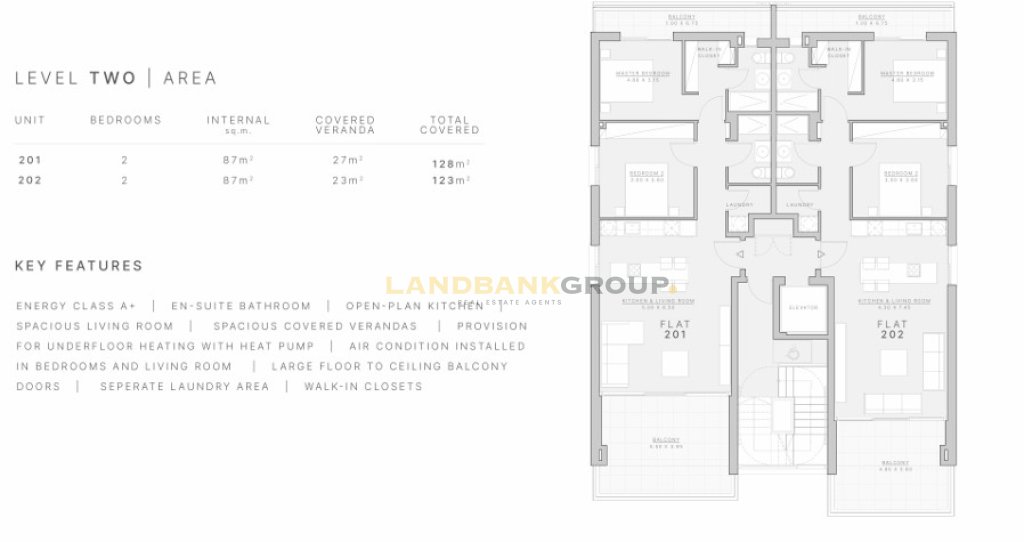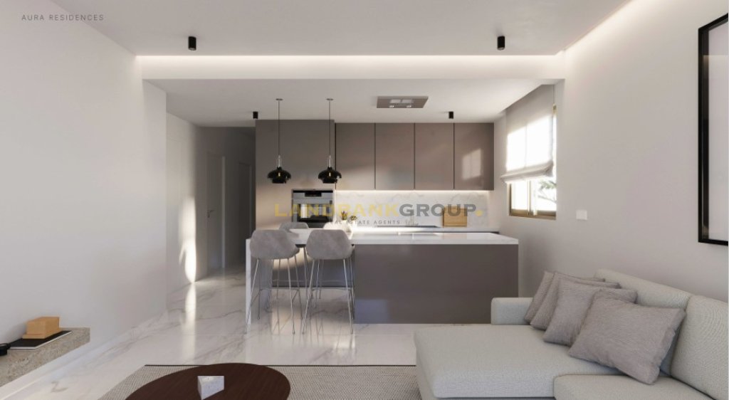 The apartment consist of an open plan kitchen with spacious dining/living room, 2 bedrooms, 2 bathrooms, security camera in parking and entrance areas, photovoltaic in common areas, provision for underfloor heating with head pump, air-condition installed in bedrooms and living rooms, large floor to ceiling balcony doors,spots lights, separate laundry area, storage room and a covered parking space.