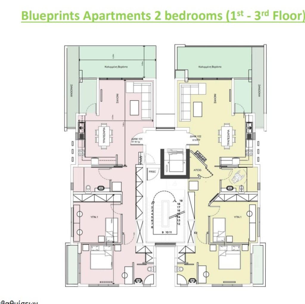 The property is a 2 bedroom apartment located on the 1st floor of a 4-storey building in Lykavitos, Nicosia.It offers an internal area of area of 97sqm with 25sqm covered verandas.