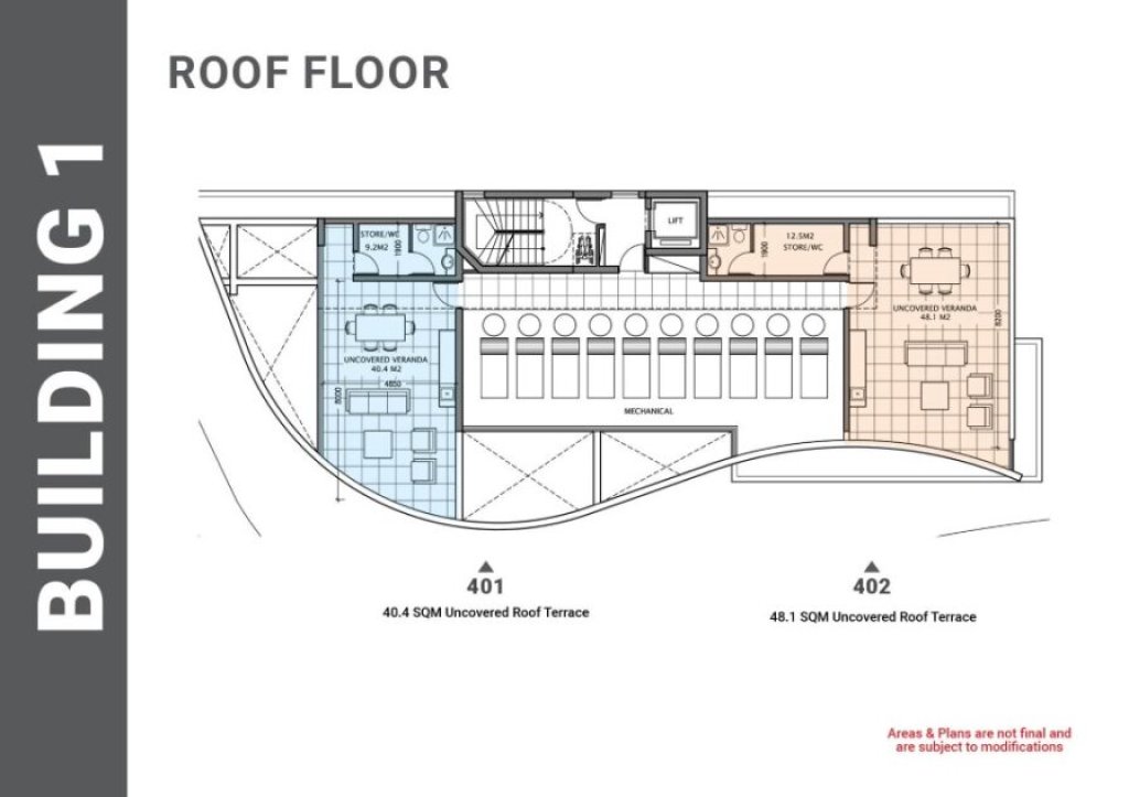 The apartment measures 179sqm total area, 86sqm internal area with a 22sqm covered veranda, a 21sqm uncovered veranda and a 50sqm roof garden.