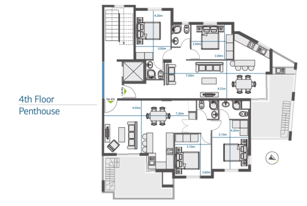 The property is a 2 bedroom penthouse apartment situated on the fourth floor of a 4-storey building in Sotiros, Larnaca.The apartment consists of an open plan kitchen and living/dining area, 2 bedrooms, 2 bathrooms, a covered veranda and a private roof garden.