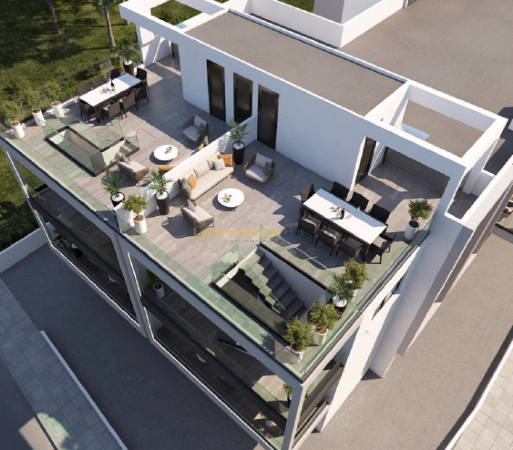 The property is a 2 Bedroom (plus 1 bedroom) Penthouse part of a two-storey building in a quiet residential area adjacent to a green park in Aradippou, Larnaca.It consists of an open plan kitchen with dining/living room area, 2 bedrooms and 2 bathrooms. The property offers a spacious roof garden, covered parking space and storage room.