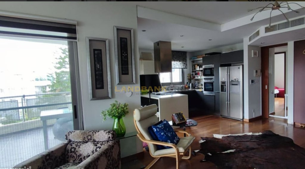 The apartment consists of 2 bedrooms, 2 bathrooms, open plan living room and a kitchen, Wooden parked, jacuzzi, heaters & A/C units in all areas and a bioenergetic fireplace,1 covered parking and storage room (7sqm) on the ground floor + extra 4sqm storage room at the roof garden.