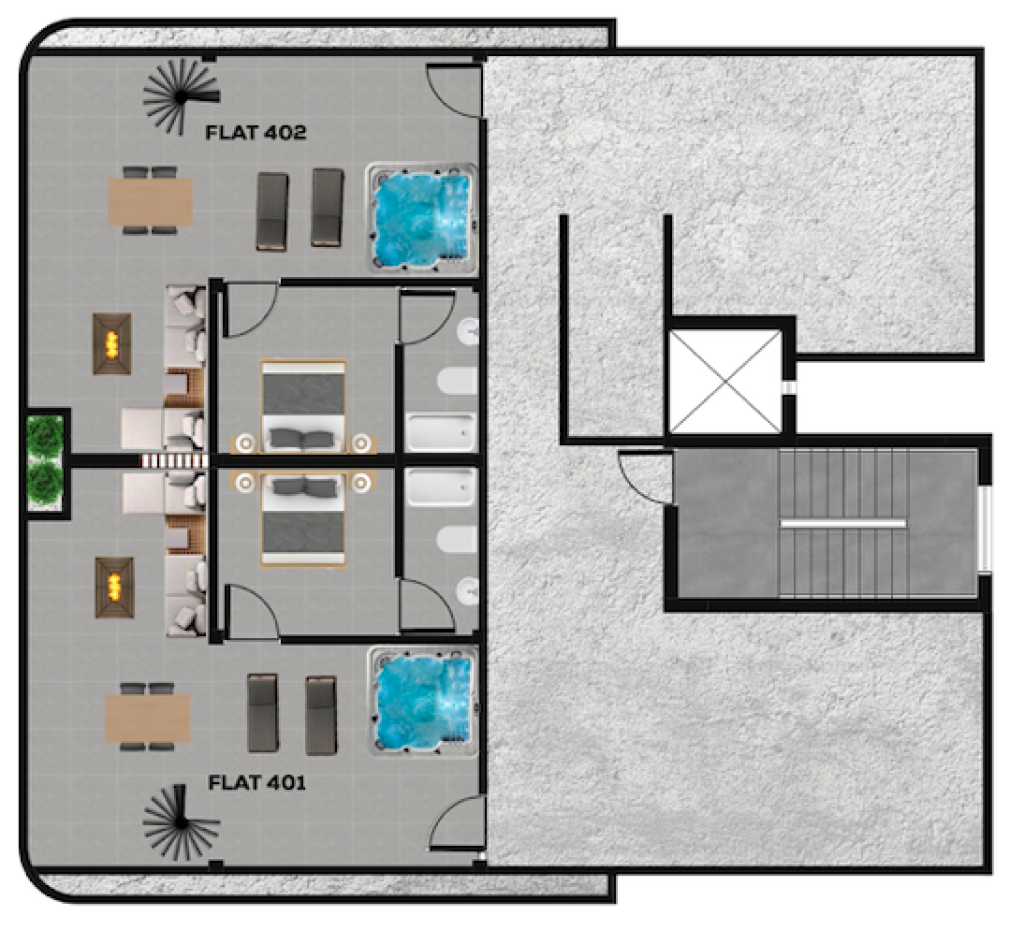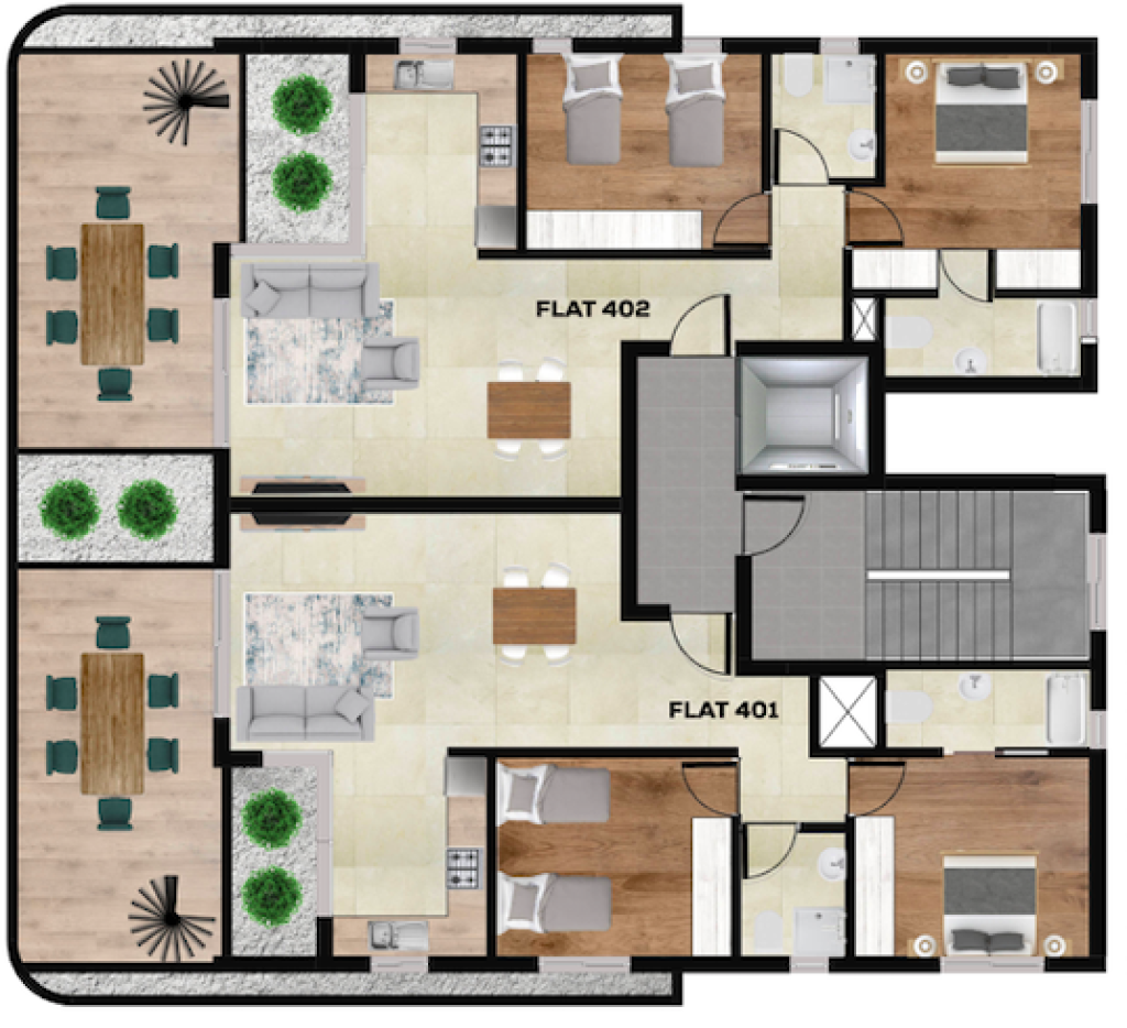 The property is a 2+1 bedroom penthouse apartment situated on the fourth floor of a 4-storey building in Livadia, Larnaca.The apartment consists of an open plan kitchen and living/dining area, 2+1 bedrooms, 3 bathrooms, a covered veranda and a private roof garden.