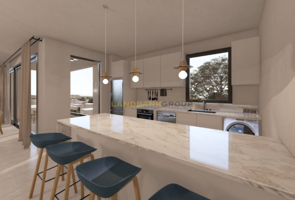 This is a three bedroom sea side whole-floor apartment located on the 2nd floor of a three-storey contemporary building in Tremithousa, Paphos.It enjoys an open plan kitchen area connected with a spacious living and dining area that have access to a covered veranda. The apartment offers 150sqm internl area plus 15sqm covered veranda.