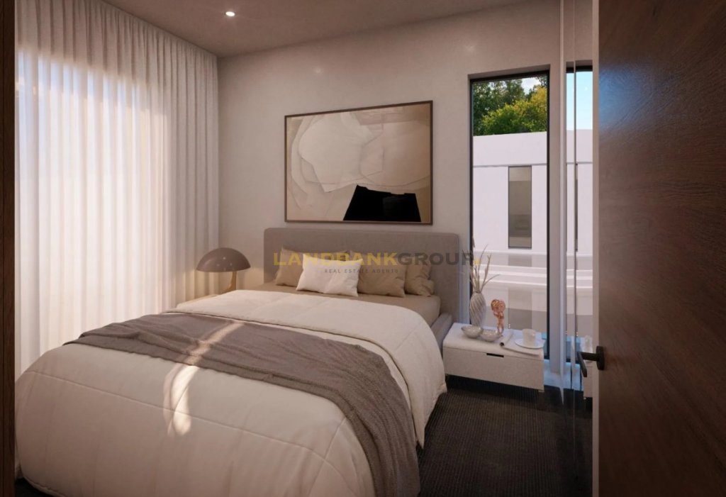 A contemporary two-storey 3 Bedroom residence designed for comfort, privacy and high energy efficiency—just 2 minutes from the sea by car and 7 minutes from the airport. With 130 sqm of internal space and plots ranging from 141–212 sqm. It features floor-to-ceiling windows, high-quality insulated frames, double internal walls and luxury Spanish ceramic tiles. The layout includes 3 bedrooms, 2 bathrooms (one en-suite) and a guest toilet, a private garden of 67–135 sqm and covered parking for 1–2 cars.✨ Key Features