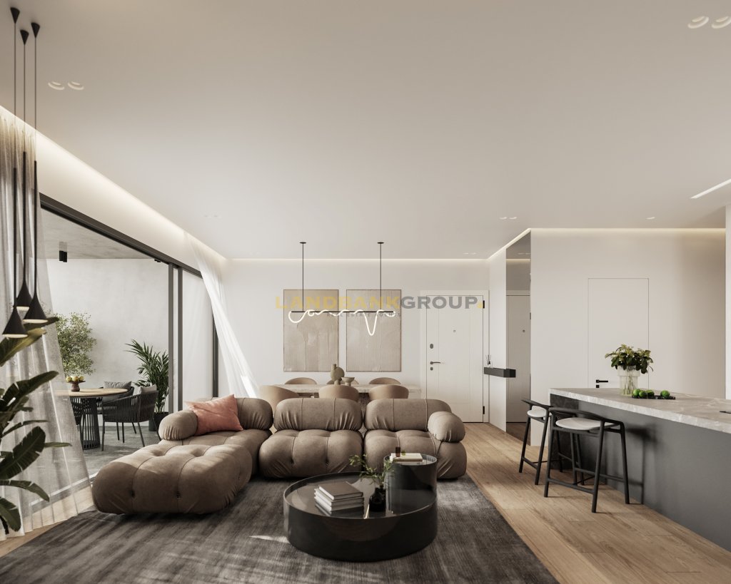 The apartment consist of an open plan kitchen with spacious living/dining room, 3 bedrooms, 2 bathrooms, air-conditioning units, underfloor heating with heat pumb,1 storage room and 2 covered parking.