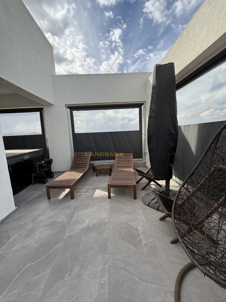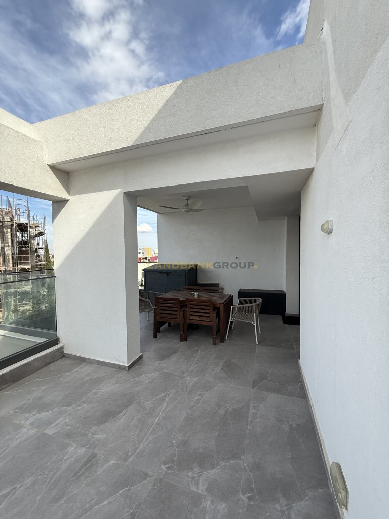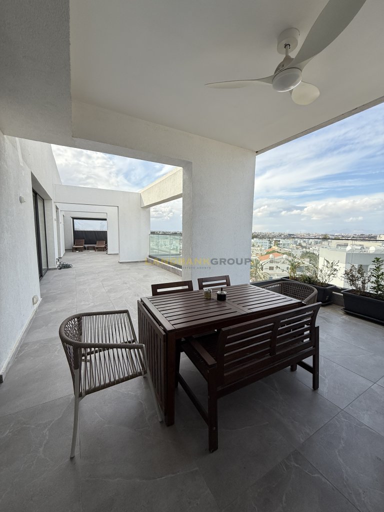 Modern 3-Bedroom Penthouse with Large Veranda and Outdoor JacuzziThis elegant penthouse is situated on the 4th floor of a newly constructed building (2025) and offers 120 sqm of internal space, fully furnished to a high standard. The property features an impressive 100 sqm semi-covered veranda, ideal for outdoor living and entertainment, complete with a private jacuzzi and an outdoor TV setup.