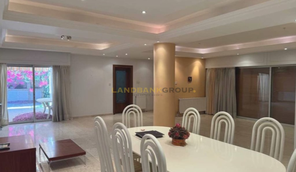 This is a beautiful 3-bedroom family home adjacent to a green area/park in a cul-de-saq. The house is on one-level, with a double parking and a separated guest-house (maid's house) in the basement.The house consists of a large sitting /dining area, an office, a separated and fully equipped kitchen, the master bedroom which is en-suite with a shower and a WC, the two additional and very well-sized bedrooms, the main bathroom, and a small storage room.