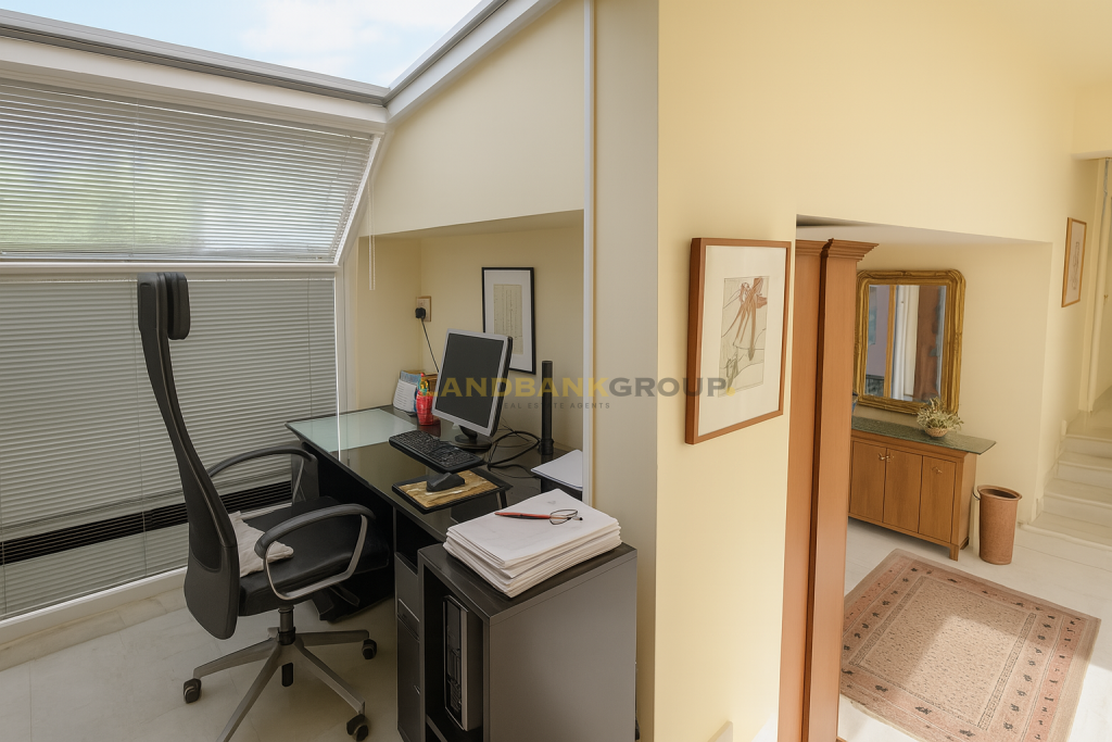 The home features underfloor heating, 3 bathrooms (one with a jacuzzi), a guest toilet, a large garden, and a 4.5m x 9m private pool. A private borehole provides water for the garden and pool. Extras include 2 covered parking spaces, a storage room, and full privacy—within a 200m radius, all surrounding land is state-owned and non-developable.