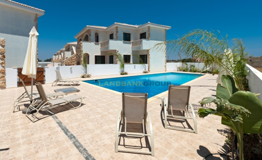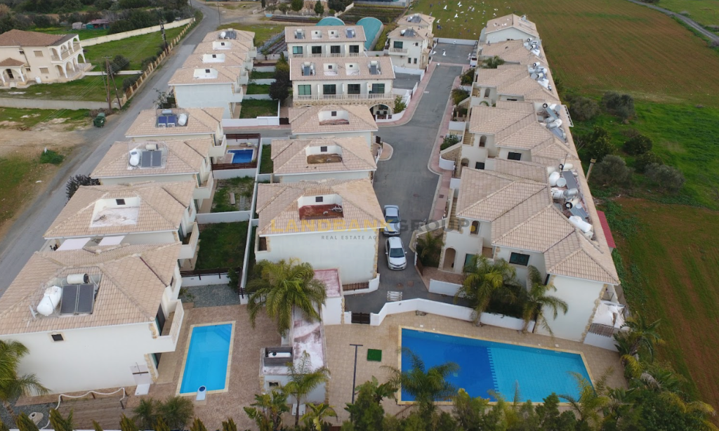 This is a two-storey 3 bedroom villa with communal swimming pool in Avgorou, Famagusta.The property is built on a plot of 128sqm land area and measures of 139sqm internal areas plus 28sqm uncovered veranda. It offers communal swimming pool.
