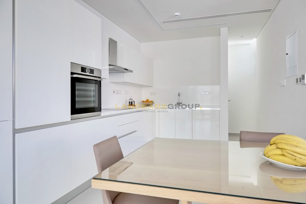 The apartment consists of an open plan kitchen with dining/living, 3 bedrooms, 4 bathrooms, covered and uncovered verandas, roof garden, BBQ area, a storage space and a covered parking space.