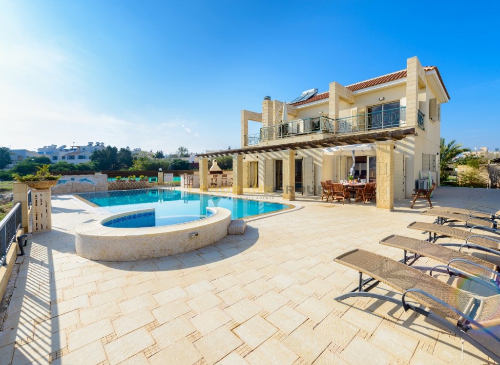 Nestled in a prime location near the famous Fig Tree Bay, Protaras, this exquisite three-bedroom villa offers a blend of comfort, luxury, and breathtaking panoramic sea views.Situated on a spacious 1,200 sqm plot, the property boasts 170 sqm of covered areas providing ample space for relaxation and entertainment.