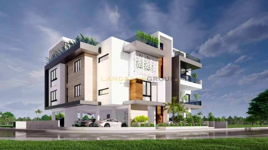 The property is a 4 bedroom duplex apartment in Agios Fanourios, Larnaca.It consists of an open plan kitchen with dining/living room area, 4 bedrooms and 6 bathrooms. The apartment has a private roof garden and a pool.