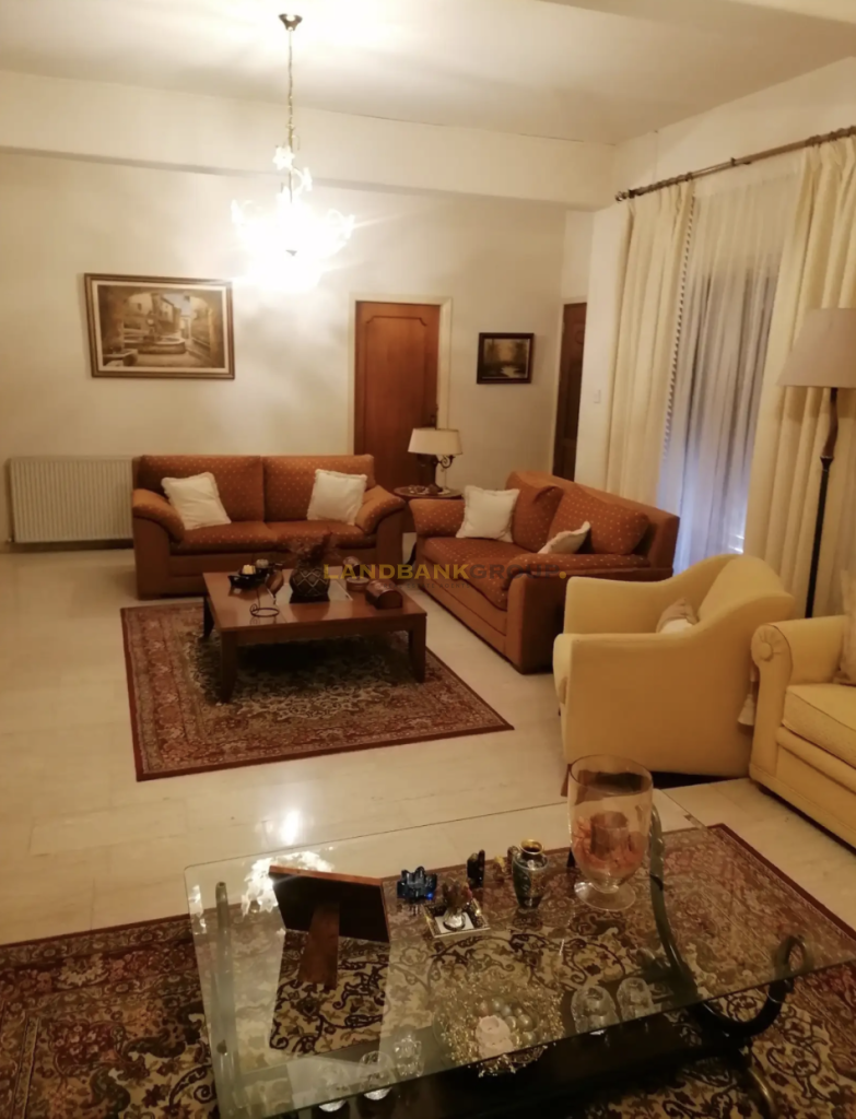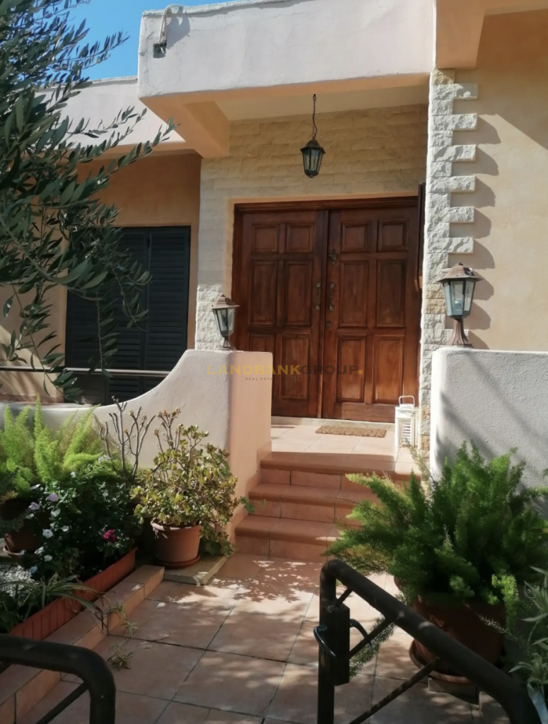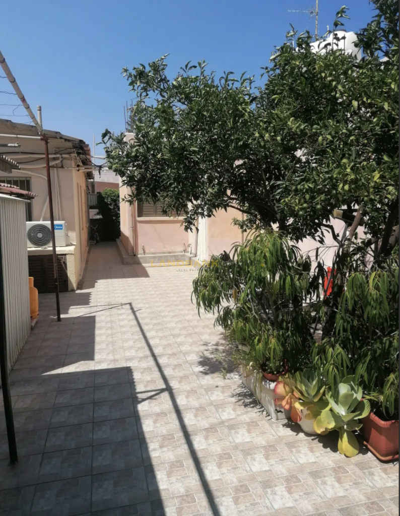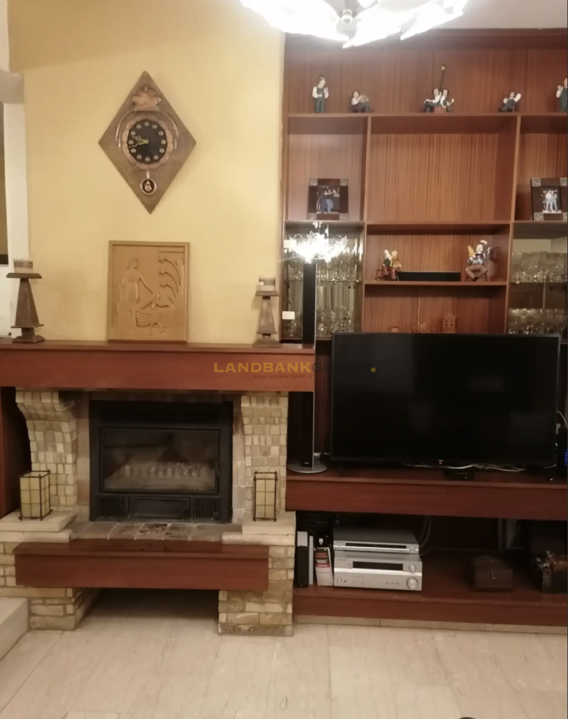 An independent 30 sqm maid’s house, two covered parking spaces, a storage room, and a mature garden with ten olive trees complete the property. Planning zone Kα6 with 90% building density provides the option to add a second floor.
