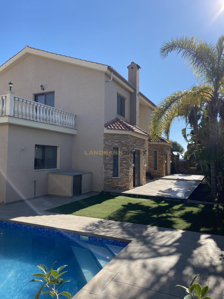 This is a 4 Bedroom two-storey House with swimming pool for sale, located in a nice and quiet neighbourhood in Trahoni, Limassol.The house offers 4 bedrooms of which the 2 are en-suite, a swimming pool, covered parking spaces for two cars and a large area which can be used as a playground or barbeque.