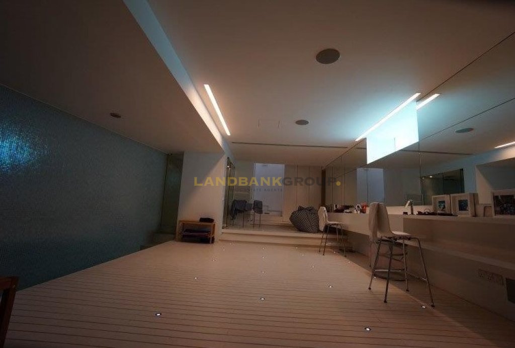 It is equipped with central underfloor heating, central air conditioning, and a central sound and lighting system both indoors and in the garden.