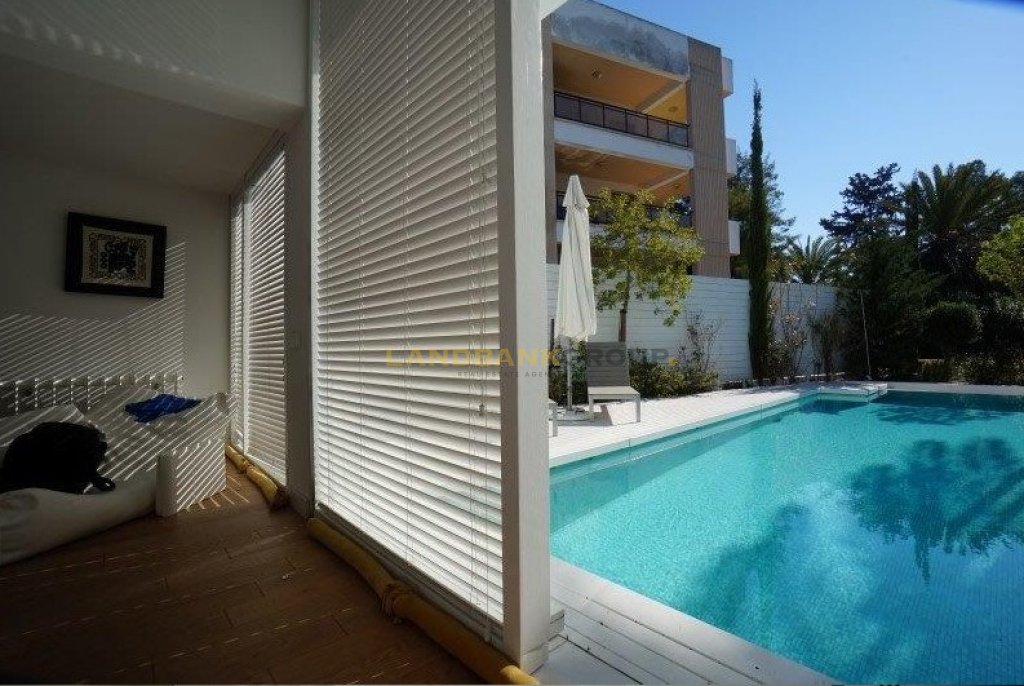 The property sits on a large plot (over 650 sq.m.) with a private swimming pool, ensuring privacy and security. The interior space covers approximately 550 sq.m.