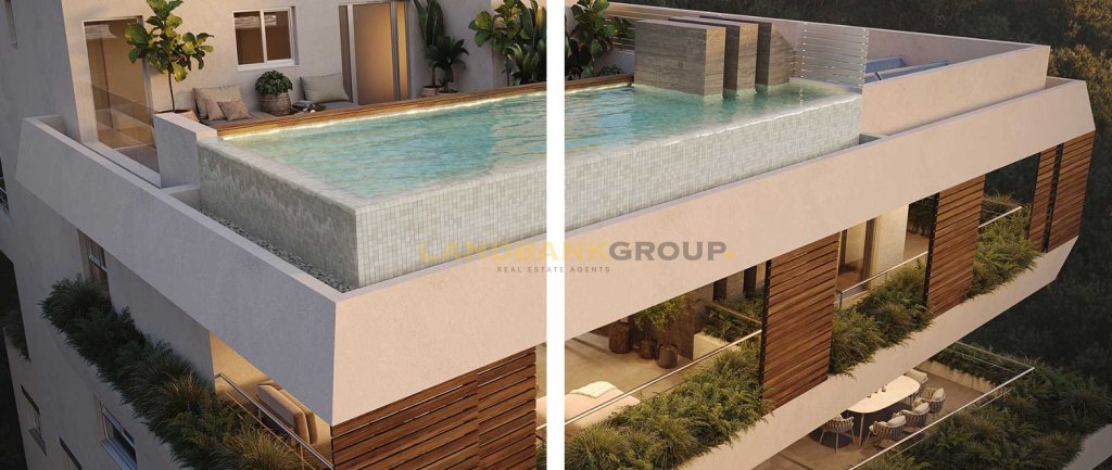 Luxurious 4-Bedroom Penthouse with private roof garden (and optional swimming pool) located in the prestigious neighborhood of Agioi Omologites — just steps from Nicosia’s vibrant city center.Offering 161sqm of internal living space, this modern residence is complemented by a 118qm uncoverd veranda. The apartment features an open plan living room/dining area with kitchen, 4 bedrooms and 4 bathrooms.