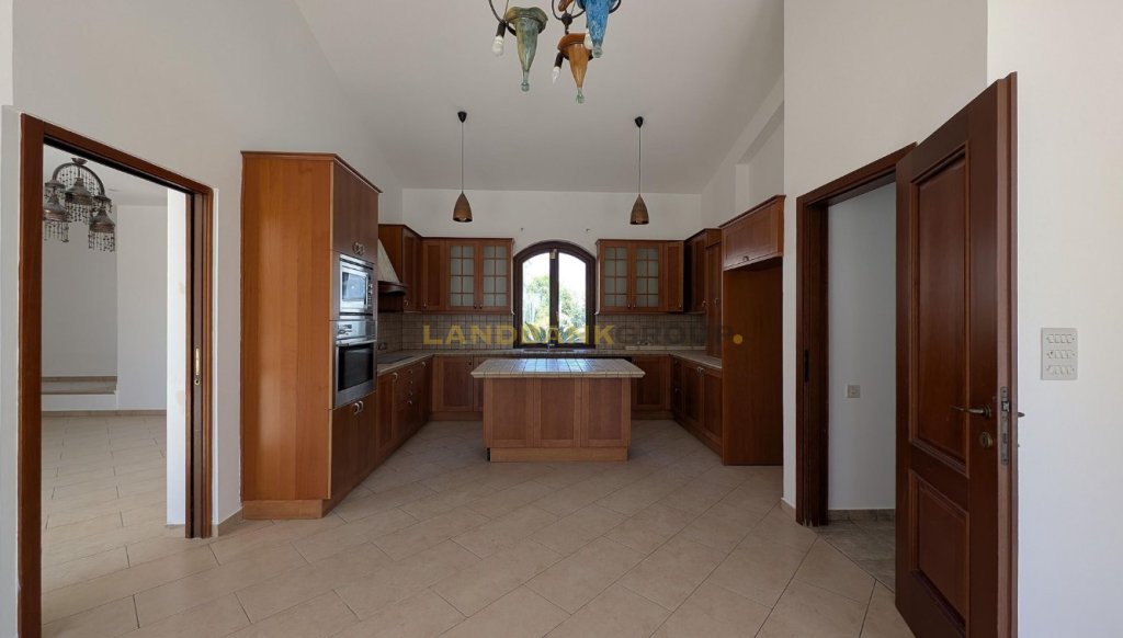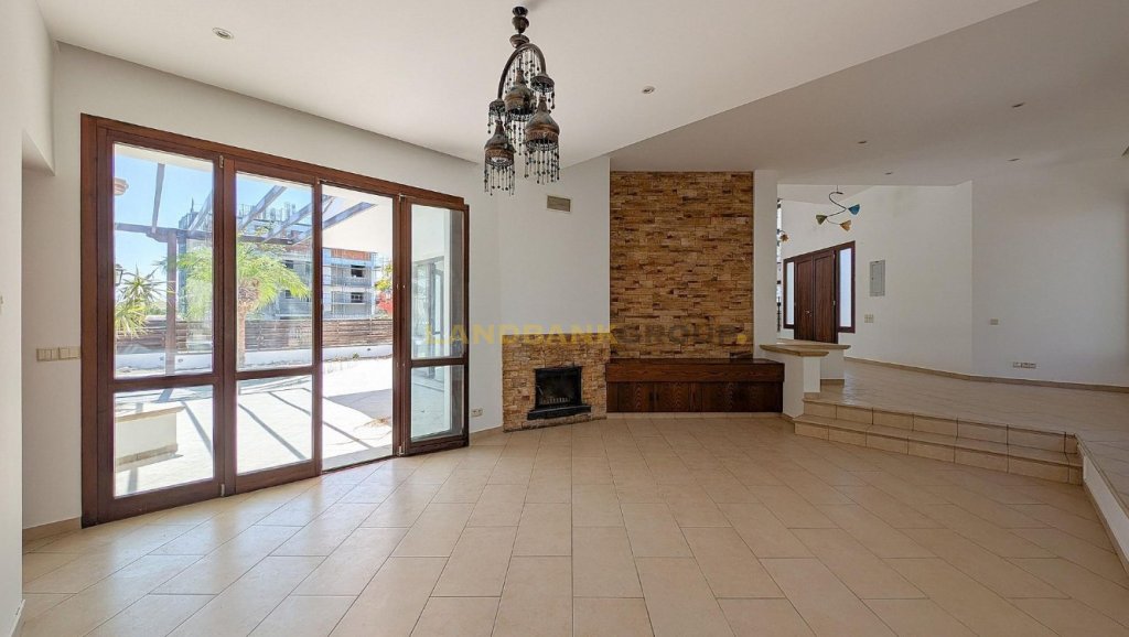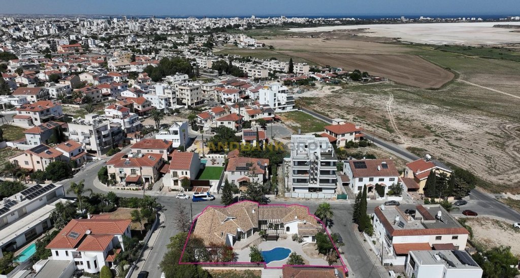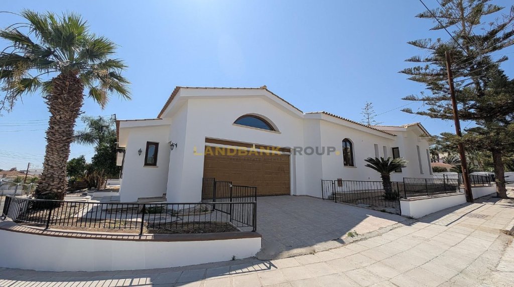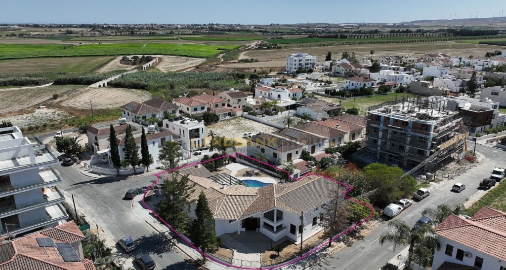 Discover comfort, privacy, and elegance in this remarkable 5-bedroom bungalow, ideally situated in the highly sought-after Krassas area of Aradippou (Vlachos quarter), Larnaca. Built on a substantial 1,051sqm corner plot with an impressive 84m total frontage this property is a rare gem offering both space and prestige.Built in 2003 and impeccably maintained, the home offers a generous 255sqm of internal living space, perfectly designed for family life and entertaining. The layout includes a welcoming entrance hall, an open-plan living and dining area with a cozy fireplace, multiple sitting areas, and a fully equipped kitchen with an additional seating space. The ground floor also features a maid’s room with an en-suite, a laundry/kitchenette, a guests' toilet, and three spacious bedrooms—one with en-suite shower, toilet, and a walk-in wardrobe.