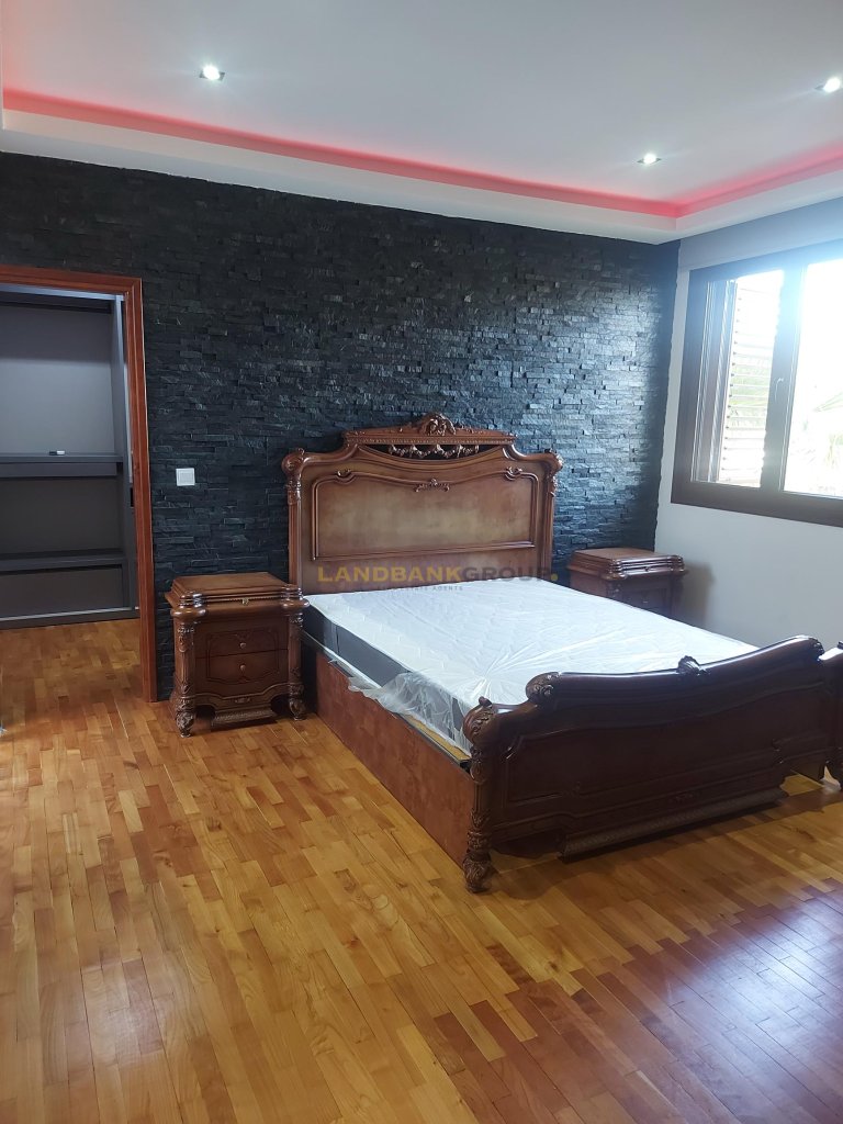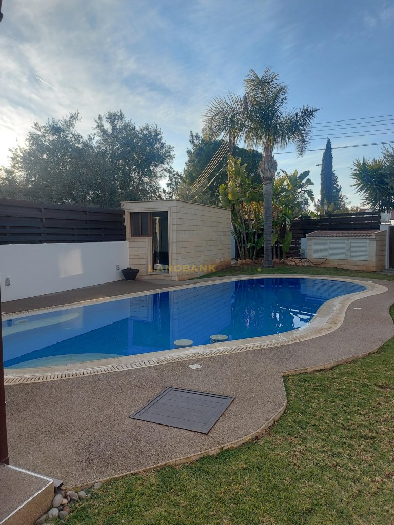 Fabulous 6 Bedroom Detached House with swimming pool and a beautiful garden (incl 700m of trees) and a swimming pool in Lakatameia, NicosiaThis fantastic two-level house contains 4 spacious bedrooms (all of which en suite and with the main bedroom containing of a walking in closet), a large living and dining area with a fireplace, a separate fully equipped kitchen, a laundry room, a guest toilet and an office.