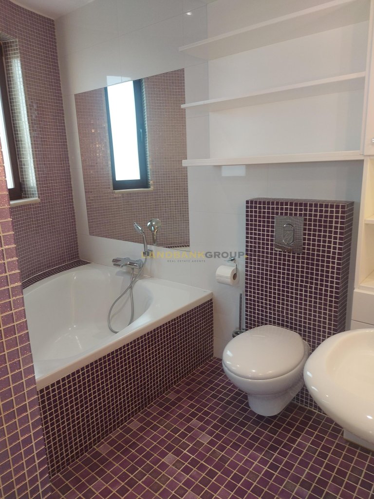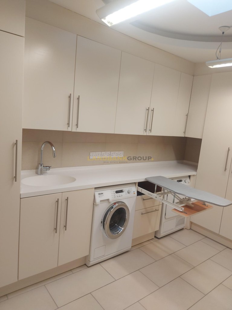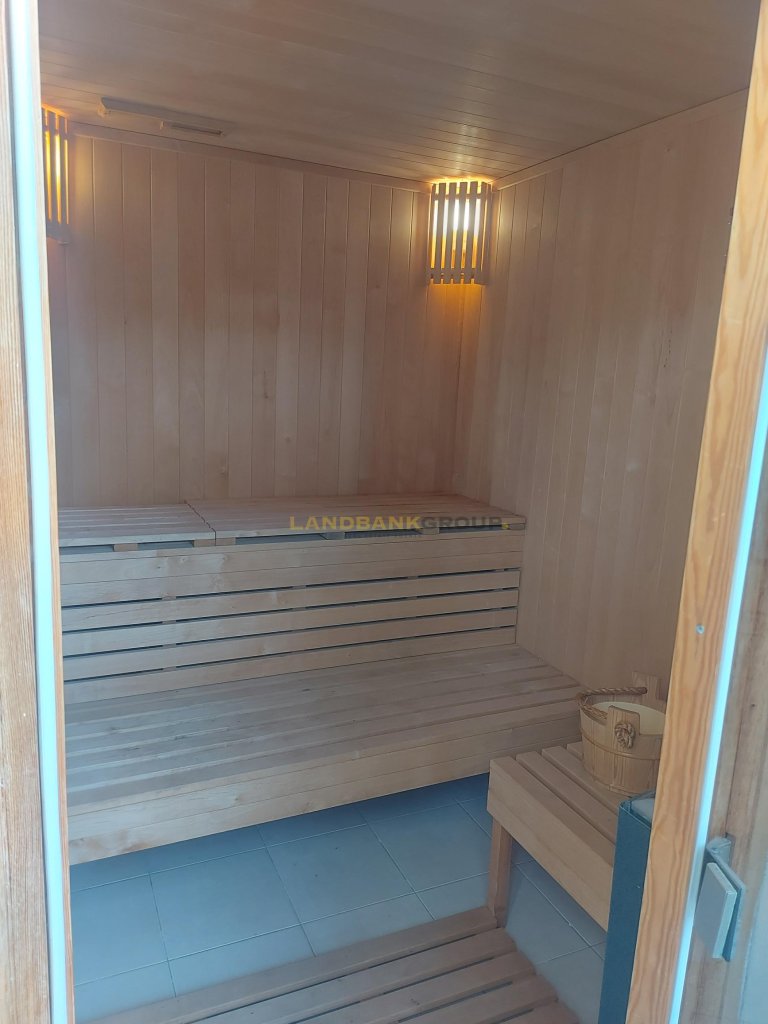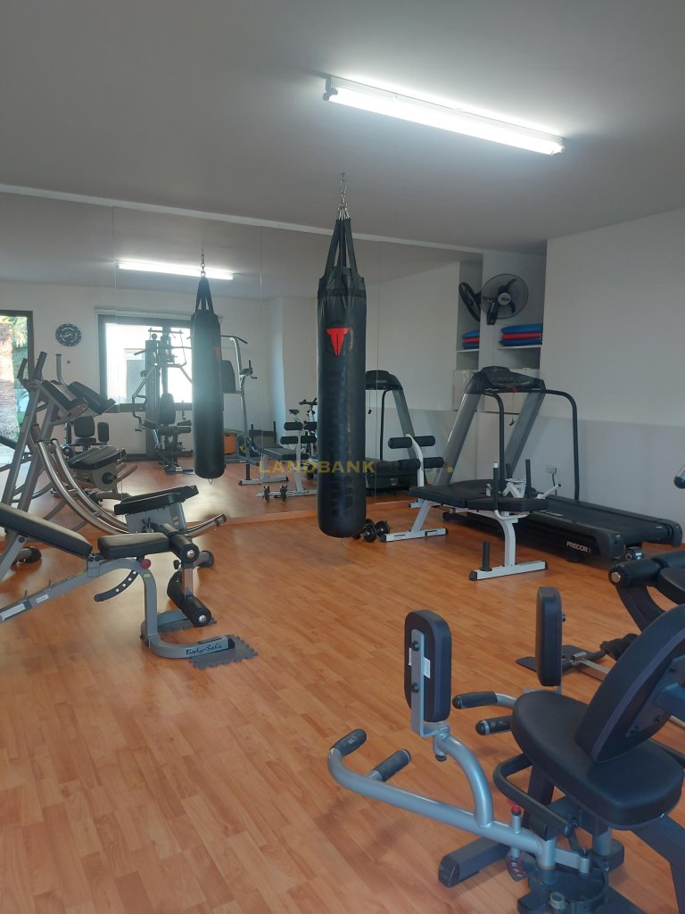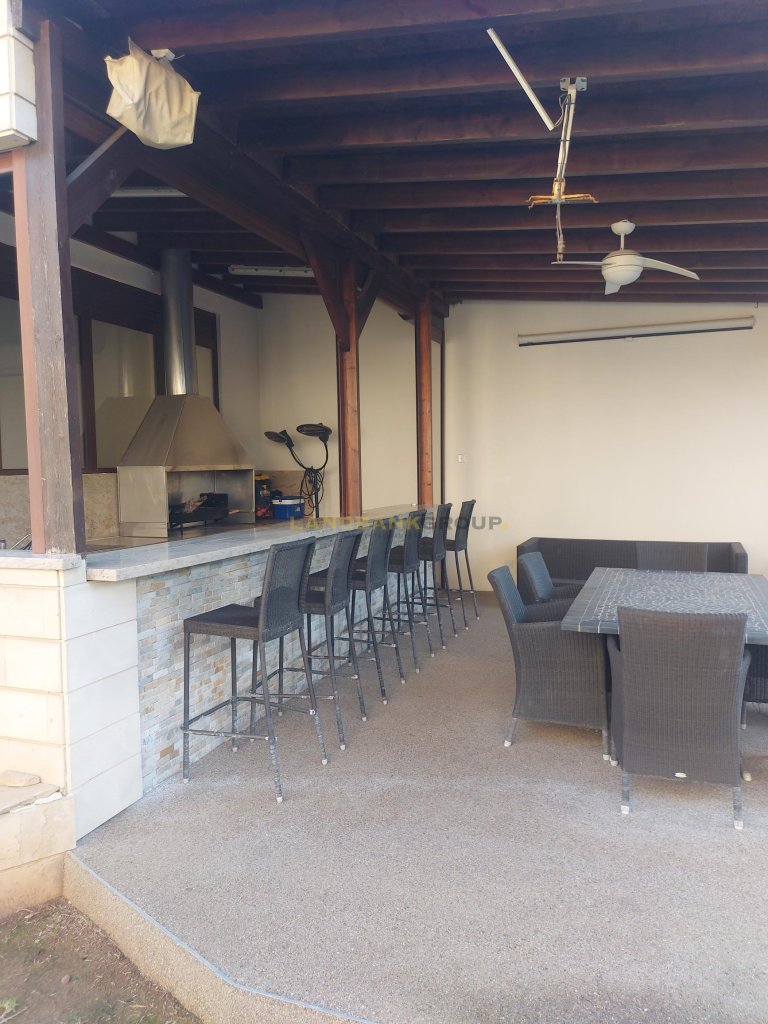 The outside area is comprised of a swimming pool, the garden, covered verandas, a BBQ area, a fully equipped Gym room, two seperate rooms with a fully equipped kitchen and bathroom for the stuff and a sauna.