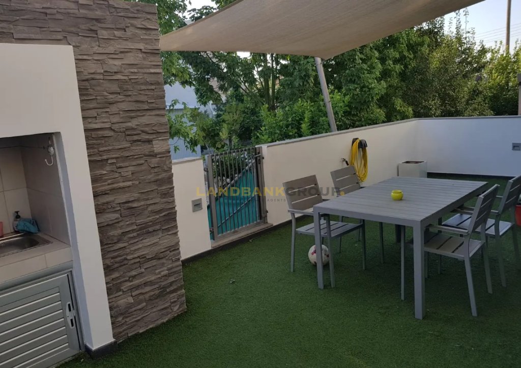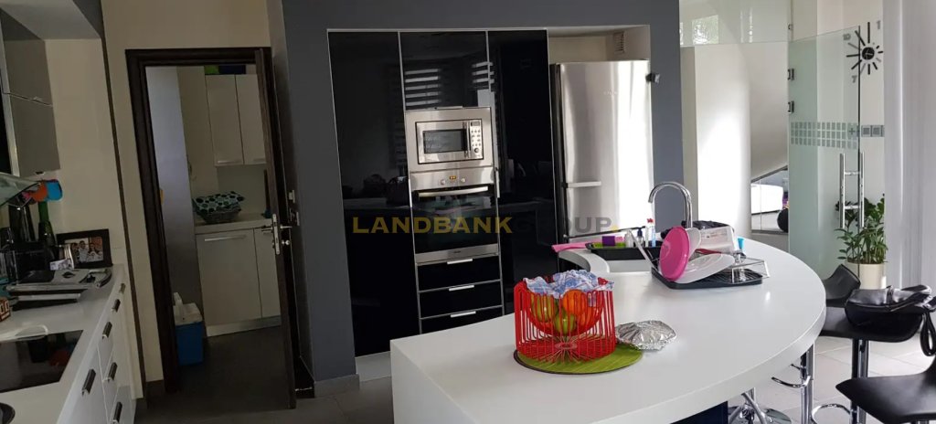 The ground level offers a bright, open-plan living area with beautiful views and direct access to the pool and garden. A modern fireplace, connected to the floor central heating system, creates a cozy atmosphere year-round. Additional features include a guest WC, a stylish ceiling with plasterboard and spot lighting, and high-end finishes throughout.
