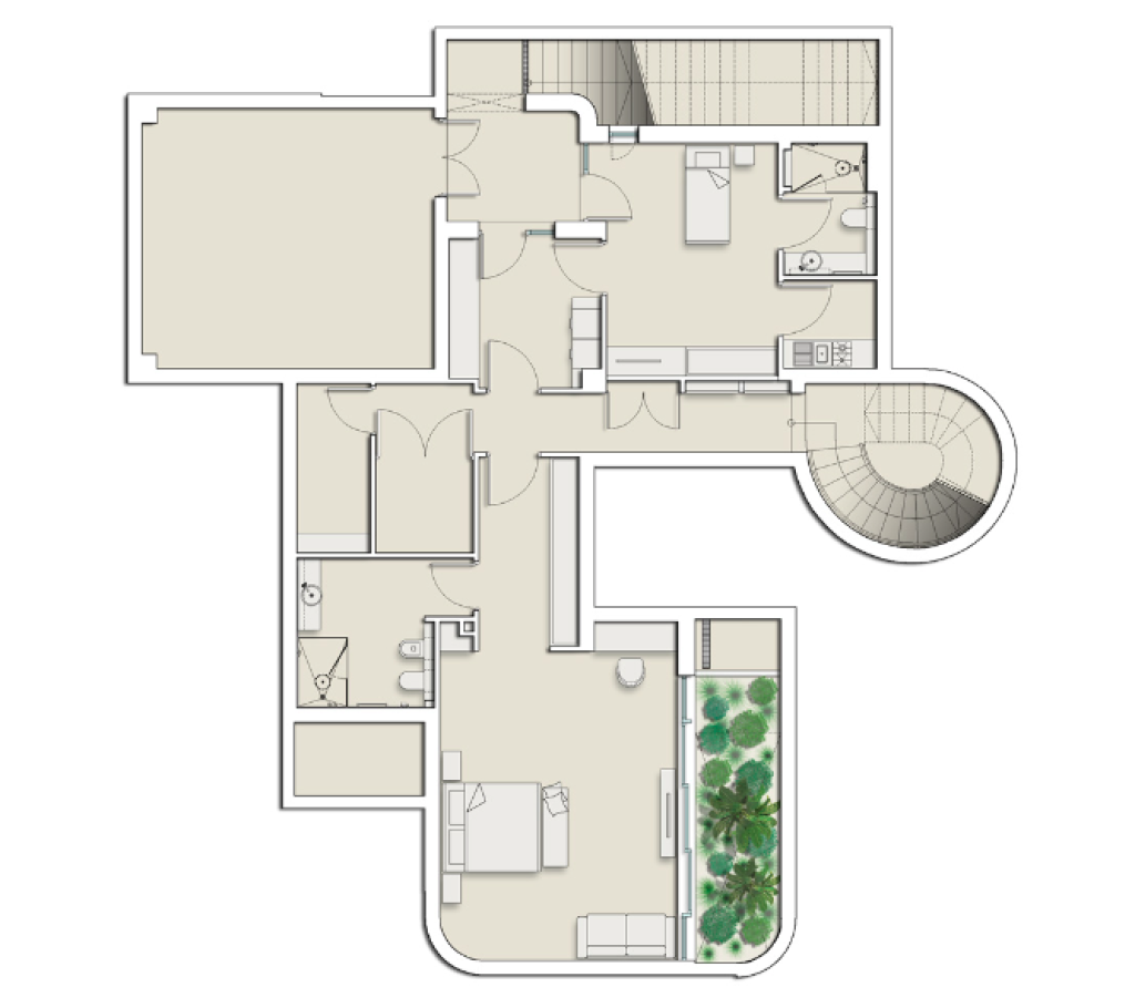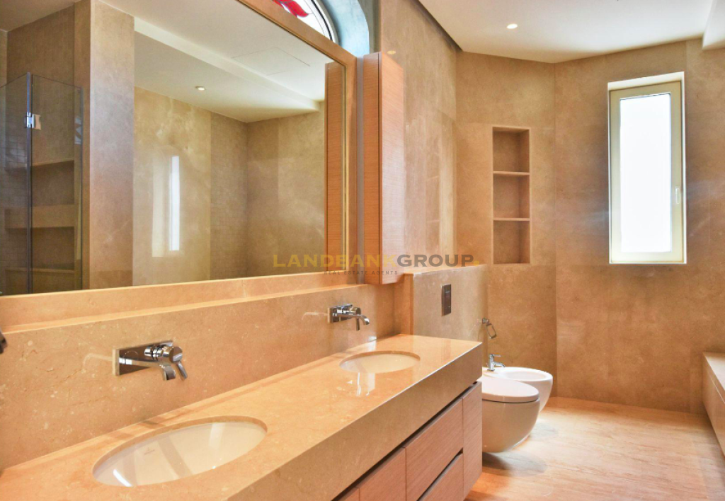 It has a very large outdoor space, a private swimming pool, heated floors, lighting control system, security system, CCTV, extra water tank, clear water system, emergency generator, double thermal insulation of walls, VRV air conditioning system, double glazed windows and a covered garage for 2 cars.