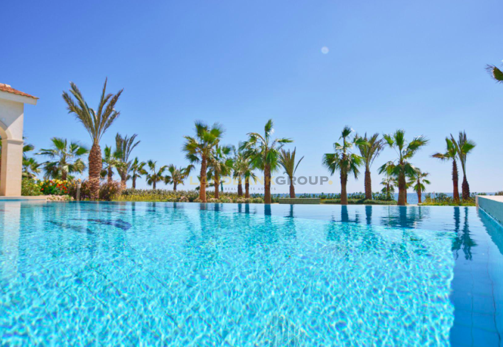 dining/living room area, 6 bedrooms and 6 bathrooms. The Villa is situated in a prestigious gated complex on the beach in Pervolia.