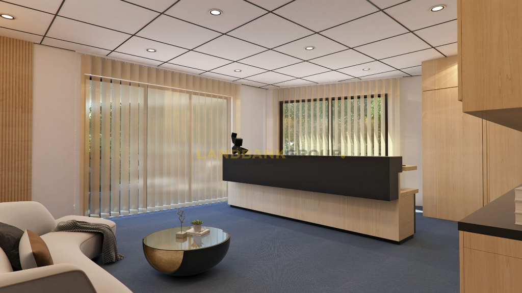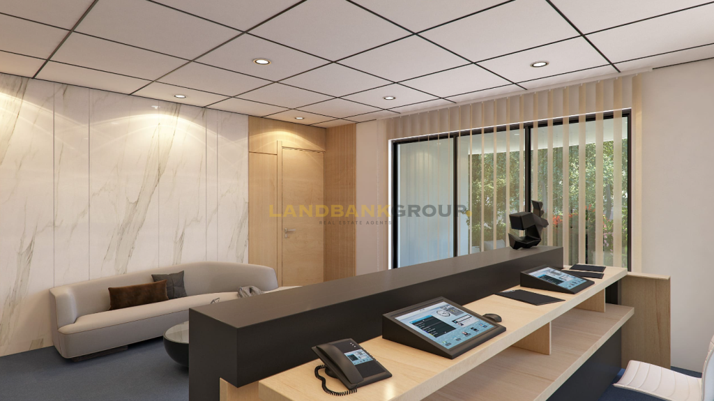 This is an office located on the 3rd floor of a contemporary five-storey building in a convenient location in Latsia, Nicosia.The office offers 82sqm internal areas with 21sqm covered veranda. It features a reception area, 2 offices and 2 toilets, covered parking space and storage room.
