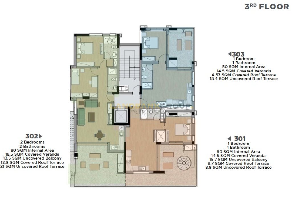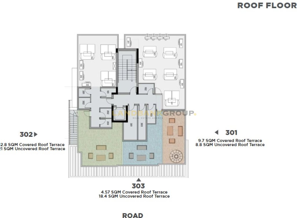 The penthouse offers 50 sqm of refined internal space, complemented by a 15 sqm covered veranda. The exclusive roof terrace further enhances the property, featuring 5 sqm of covered and an additional 18 sqm of uncovered roof garden.